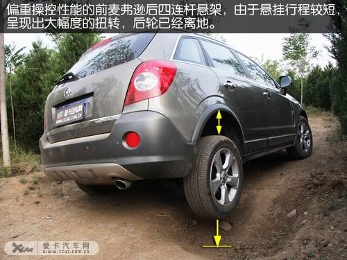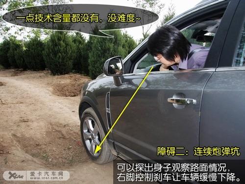 緊接著,我們又來(lái)到對(duì)懸掛以及接近角考驗(yàn)頗深的炮彈坑。探出身子觀察路面情況,右腳控制剎車讓車輛緩慢下降,由于是呈對(duì)角的彈坑,看似不深的凹陷,使安德拉偏重操控性能的前麥弗遜后四連桿懸架,呈現(xiàn)了大幅度的扭轉(zhuǎn),由于懸掛行程較短,后輪也已經(jīng)離地。
