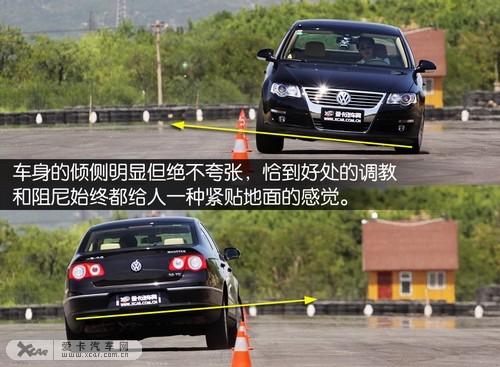 進(jìn)入樁桶,指向精準(zhǔn)的方向盤對路面反饋仍然細(xì)膩清晰,懸掛的收縮很快,韌性十足。雖然車頭依然有一點(diǎn)轉(zhuǎn)向不足,但是良好的人車溝通和后輪跟隨性,使新邁騰無限接近操控的極限。