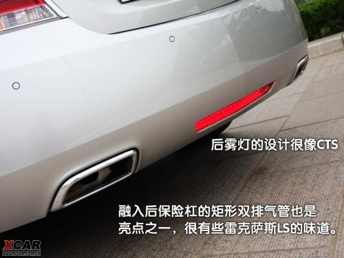 如果車頭的似曾相識讓你感到無趣,那么轉(zhuǎn)到車尾你就會(huì)眼前一亮。新君越的尾部顯然比車頭更能抓人眼球,兩排LED尾燈組科技感十足,夜間的照明效果也更好,類似昂科雷的鍍鉻金屬包邊也出現(xiàn)在尾燈上,不過所不同的是不再是奢侈的大面積包圍而只是上面有鍍鉻金屬勾勒出類似燈眉的效果。融入后保險(xiǎn)杠的矩形雙排氣管也是亮點(diǎn)之一,很有些雷克薩斯LS的味道,甚至讓我有些懷疑這種精致設(shè)計(jì)是不是出自于眼前這輛美國車。