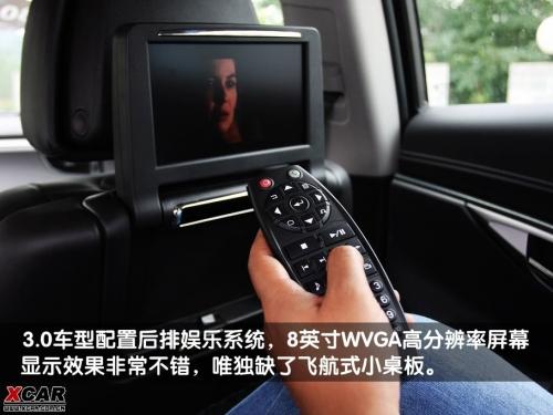 同樣只能在3.0車型上找到的配置還有后排娛樂系統(tǒng)和三區(qū)空調(diào),其兩個(gè)后排液晶屏固定在前排椅背上,不用的時(shí)候可以完全折疊起來,不影響美觀。由于采用了8英寸的WVGA高分辨率屏幕,其顯示效果非常不錯(cuò)。如果搭配AV輸入和隱藏的230V電源使用,在后排玩游戲機(jī)絕對(duì)不失為商務(wù)精英們忙里偷閑的絕佳休閑方式。