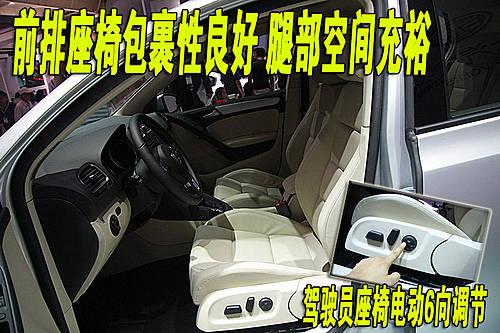 第六代高爾夫整車座椅均采用真皮材料,駕駛席座椅前后、靠背角度、座椅高度為電動調(diào)節(jié)。各按鈕四周做工較細(xì)致,但感覺比較松垮。乘坐時(shí)可以感覺到前排座椅對于背部的支撐與包裹十分到位,同時(shí)前排座椅坐墊長度也很合適,對大腿部分的支撐充足。