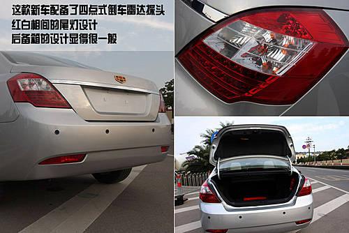 帝豪EC718的尾部設(shè)計(jì)也非常漂亮,線條流暢,造型也比較新穎。尤其是尾燈和霧燈的設(shè)計(jì),看上去更加成熟、穩(wěn)重。而這款新車尾部配備了四點(diǎn)式倒車?yán)走_(dá)探頭,后排氣管采用隱藏式設(shè)計(jì)。后備箱的設(shè)計(jì)比較一般,開(kāi)口寬度不是很大,而且尾門支撐并沒(méi)有采用液壓挺桿。
