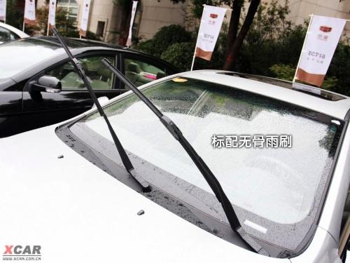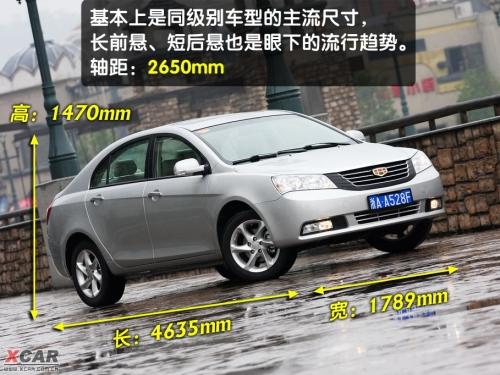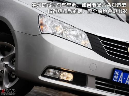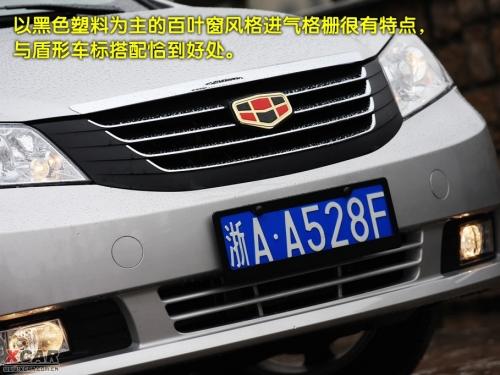 以黑色塑料為主的百葉窗風(fēng)格進(jìn)氣格柵很有特點,個人感覺和以方塊為基調(diào)的盾形車標(biāo)搭配恰到好處。頭燈和尾燈都是眼下最流行的造型,雖然依稀還有些模仿的影子,但是整體效果不錯。如果把帝豪車標(biāo)擋住的話,真的很難想到這是一臺吉利車。美中不足的是霧燈的設(shè)計有些單調(diào),如果能配合頭燈造型做得更精致的話,整個前臉會更出彩。