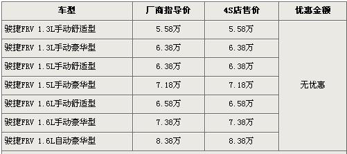 據(jù)經(jīng)銷(xiāo)商處銷(xiāo)售人員介紹,駿捷FRV在售車(chē)型已經(jīng)擴(kuò)大到了7款,新增加了分為舒適版和豪華版的手動(dòng)1.5L排量車(chē)型。目前購(gòu)買(mǎi)駿捷FRV的消費(fèi)者在現(xiàn)金方面沒(méi)有任何優(yōu)惠,并且全系1.3L和1.6L車(chē)型均無(wú)現(xiàn)車(chē),1.5L排量車(chē)型現(xiàn)車(chē)數(shù)量一般,如果錯(cuò)過(guò)此批現(xiàn)車(chē)的消費(fèi)者需交訂金2000元,最早半個(gè)月后提車(chē)。
