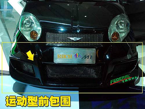 瑞麒M1改裝車的前杠換成了運(yùn)動(dòng)型前包圍,看起來非常的運(yùn)動(dòng),改裝的相當(dāng)徹底,不是簡單改改前部,讓車身的感覺更低。