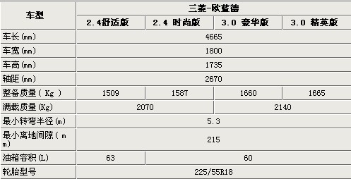 全新一代三菱歐藍(lán)德的身尺寸達(dá)到了4665mm;1800mm;1735mm,保證了其內(nèi)部橫向空間及頭部空間的寬敞。2.67米的軸距為新歐藍(lán)德提供了舒適的內(nèi)部空間。新歐藍(lán)德的最小離地間隙為215mm,足以適應(yīng)一般道路的路況,同時(shí)5.3m的最小轉(zhuǎn)彎半徑,也可以適應(yīng)中國(guó)地區(qū)道路窄小的特點(diǎn)。60升的油箱,可以保障人們?nèi)粘3鲇蔚男枰?/p>