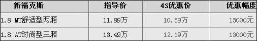 兩廂福克斯最高優(yōu)惠1.3萬(wàn)元