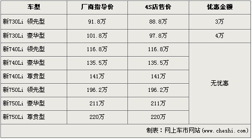 據(jù)北京寶馬經(jīng)銷(xiāo)店銷(xiāo)售人員介紹,寶馬新7系共分為730Li、740Li、750Li三種等級(jí)車(chē)型,售價(jià)區(qū)間為91.8萬(wàn)元-220萬(wàn)元。目前購(gòu)買(mǎi)新730Li領(lǐng)先型的消費(fèi)者可以得到3萬(wàn)元的優(yōu)惠,新730Li豪華版車(chē)型可以?xún)?yōu)惠4萬(wàn)元。消費(fèi)者還介紹,除了新730Li有現(xiàn)車(chē)外,其余車(chē)型均需預(yù)訂,訂金是10萬(wàn)元,最早12月份可提車(chē)。