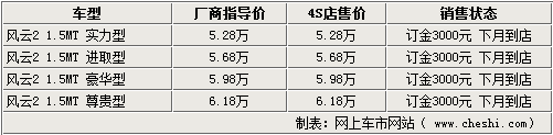奇瑞經(jīng)銷商表示,現(xiàn)在店內(nèi)的風(fēng)云2新車不全,消費(fèi)者購車需要繳納3000元訂金并等待半個月才可提車。由于是全新的車型,所以現(xiàn)階段購車暫時沒有任何形式上的優(yōu)惠。