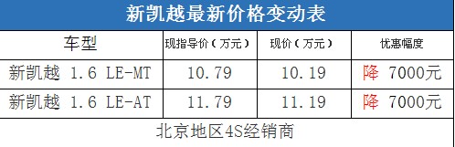 自2010年1月4日起,對別克凱越車型系列進行優(yōu)化精簡,在售車型僅保留1.6LE AT(自動舒適版)和1.6LE MT(手動舒適版)兩款,同時市場售價調(diào)整為11.79萬元和10.79萬元,媒體紛紛猜測這種官方降價是在為英朗騰出價格空間。編輯從北京地區(qū)通用別克4S經(jīng)銷商處了解到,目前凱越兩款車型均有銀色現(xiàn)車在售,購車可以優(yōu)惠7000元現(xiàn)金。據(jù)經(jīng)銷商透露,消費者要想以這個價格提車,需要在店內(nèi)做一條龍服務(wù),其中車輛四項基本保險可以打9折。以下是凱越最新價格變化表: