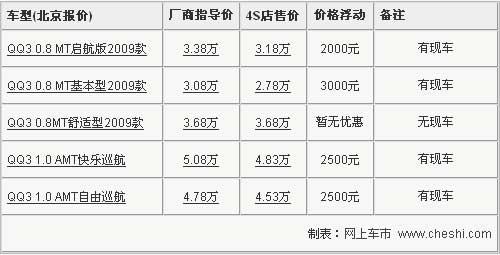 奇瑞QQ3在國內(nèi)微型車市場上可謂是出盡了風(fēng)頭,作為奇瑞汽車的主力產(chǎn)品,QQ3的銷量也一直都保持在很領(lǐng)先的水平。經(jīng)過多年的打拼,奇瑞QQ3憑借著超低的價格和可愛的外觀不斷吸引著更多消費者的關(guān)注。車展過后,奇瑞QQ3的市場情況也有所改變,較車展前期的優(yōu)惠力度相比,目前的優(yōu)惠力度有所降低,具體信息請參考下表: