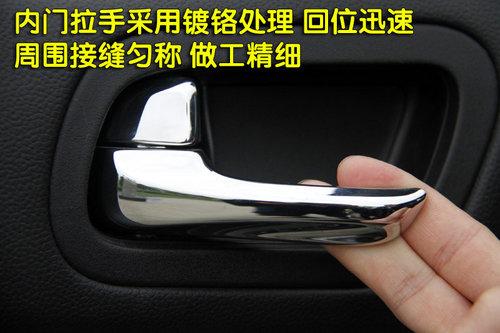 內(nèi)門拉手采用了鍍鉻的處理,拉手及周圍接縫勻稱,做工精細,回位比較迅速,阻尼適中。