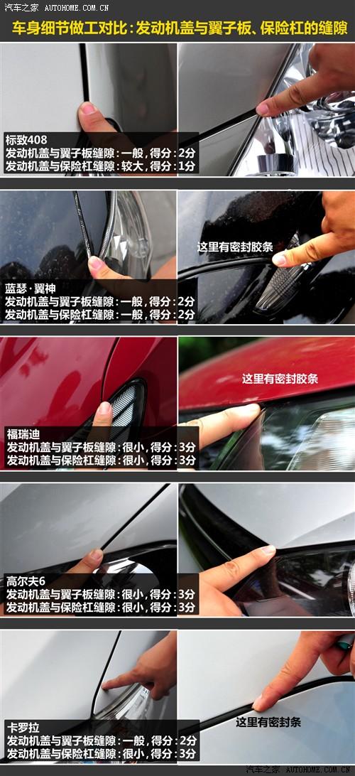 在這一環(huán)節(jié)的對比中,得分最高的高爾夫占了很大的便宜,其實是因為它采用了激光焊接的車頂,而出乎我們意料的不是高爾夫,而是福瑞迪,他的鈑金縫隙控制非常好,發(fā)動機蓋與翼子板和保險杠的接縫都非常小,在10款車中都是最小級別的。