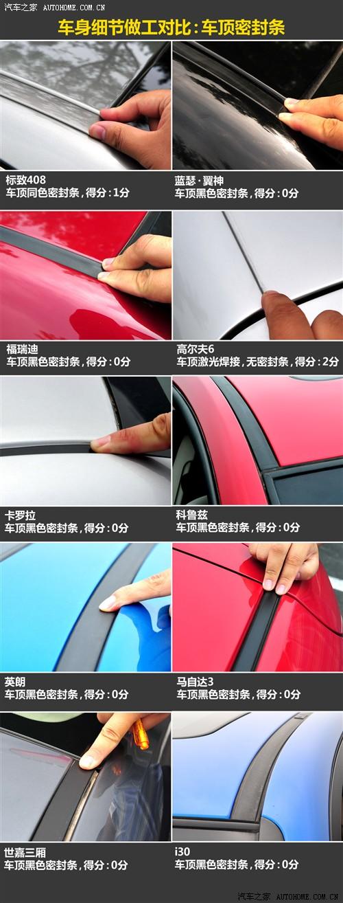 車頂沒有采用激光焊接同時只有黑色密封條的,得0分