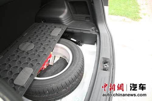 圖注:全尺寸備胎很厚道,只是備胎格里沒有任何隔音鋪裝,只有光禿禿的鐵皮,比較遺憾。