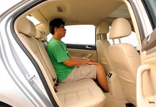 速騰的車內(nèi)空間在三車之中排在最后,2578mm的軸距直接導(dǎo)致了車內(nèi)空間的不足,當(dāng)車內(nèi)坐滿5人后已經(jīng)顯得比較擁擠了,而且在設(shè)計(jì)上速騰也比較偏心前排乘員,前排乘客很容易就能找到自己舒適的位置,不過調(diào)整好座椅位置后,后排乘客的腿部空間只剩3指左右,乘坐夠用但與舒適距離還比較遠(yuǎn)。