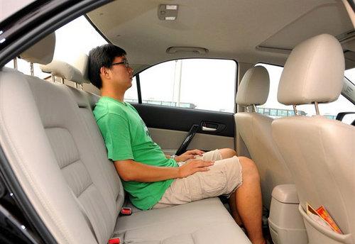 軒逸的后排腿部空間可謂是真正的跨級(jí)水平,身高180cm以下的人都可以輕松翹起二郎腿,在這點(diǎn)上速騰和馬6都望塵莫及,加上軒逸柔軟、舒適、寬大的真皮座椅,坐在軒逸上面真的很容易讓人犯困。不過需要指出的是,軒逸的車身寬度是三車當(dāng)中最窄的,當(dāng)它的后座擠滿三位乘客時(shí),后排空間就略顯局促了。