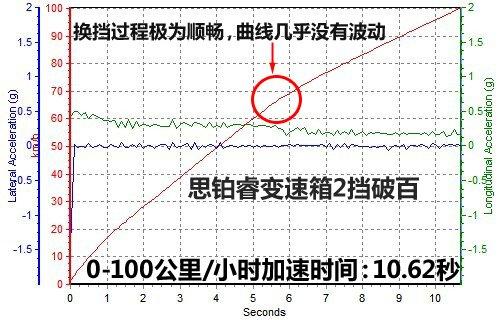 既然說(shuō)到這里,就讓我們先來(lái)看看思鉑睿的加速成績(jī)。如果你用S擋自動(dòng)模式(關(guān)掉車身穩(wěn)定控制),起步的時(shí)候根本聽(tīng)不到輪胎有一絲接近極限的跡象,看著發(fā)動(dòng)機(jī)轉(zhuǎn)速慢慢攀升的樣子讓人覺(jué)得時(shí)間十分漫長(zhǎng),最終的成績(jī)都將會(huì)在11秒開(kāi)外,這顯然不能代表思鉑睿的真實(shí)水平。后來(lái)測(cè)試中我們?cè)赟擋下改用手動(dòng)模式,盡管思鉑睿的5擋變速箱可以2擋破百,也就是說(shuō)在測(cè)試過(guò)程中只需要換一次擋,但區(qū)別還是很大。在S擋模式下,發(fā)動(dòng)機(jī)轉(zhuǎn)速會(huì)在不到6500轉(zhuǎn)/分鐘的時(shí)候自動(dòng)換擋,而手動(dòng)模式可以把轉(zhuǎn)速拉到7000轉(zhuǎn),這樣一來(lái)在換到2擋時(shí)就可以獲得更高的轉(zhuǎn)速,加速成績(jī)可以提高將近一秒鐘左右。最終我們實(shí)測(cè)的思鉑睿0-100加速成績(jī)?yōu)椋?0.62秒。