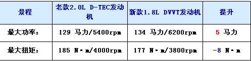 老款景程使用的是一款直列四缸的2.0L發(fā)動機,最大功率只有129馬力(95kW),最大扭矩為185牛米,對于一款2.0L的發(fā)動機來說,這樣的數(shù)據(jù)確實有些不理想。而2010款景程更換了科魯茲的1.8L DVVT發(fā)動機,其采用Ecotec技術(shù),最大功率達到134馬力,最大扭矩為177牛米。在排量降低的情況下仍實現(xiàn)了最大功率的反超。