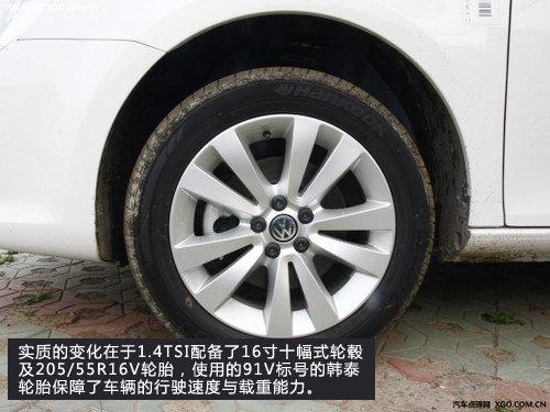 2011款寶來在外觀上與老款相對變化不大,比較實質(zhì)的變化在于1.4TSI配備了16寸十幅式輪轂及205/55R16V輪胎,使用的91V標號的韓泰輪胎保障了車輛的行駛速度與載重能力。
