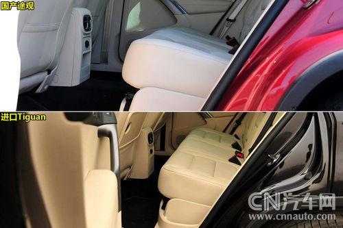 進(jìn)口車型的后排空間相比國(guó)產(chǎn)車型就只能用緊湊來(lái)形容了,不過其前排座椅后部還有折疊小桌板,后排中央扶手也比國(guó)產(chǎn)車型多了一個(gè)水杯架的真皮蓋板。國(guó)產(chǎn)高配車型本身與進(jìn)口車型價(jià)差就不大,再加上加價(jià)和等待,優(yōu)勢(shì)就更加不明顯。相比之下進(jìn)口車型的長(zhǎng)寬比例顯得更加協(xié)調(diào),如果對(duì)于越野用途有著更多喜好,原滋原味的進(jìn)口Tiguan是不錯(cuò)的選擇。