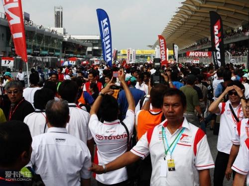 正賽開始前,所有賽車和模特都將走上賽道,此時(shí)會對賽會嘉賓開放賽道15分鐘,以供大家與自己喜愛的車手和模特們拍照。只是在這短短的15分鐘內(nèi),賽道上足以變得水泄不通,可見SUPER GT的火爆程度。