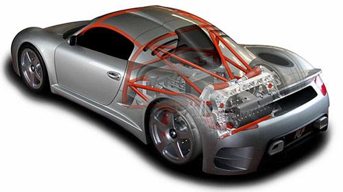 經(jīng)RUF重新打造的3.7L水平對置六缸雙渦輪增壓發(fā)動機,最大功率輸出700馬力/7000轉(zhuǎn),扭矩峰值890牛•米/4000轉(zhuǎn);并采用六速順序式變速箱,中置后驅(qū)的驅(qū)動形式;由靜止加速到100km/h僅需3.2秒,極速更是達到了375km/h。正如之前所說,若你認為這只是一款深度改裝的保時捷,那便大錯特錯了。打開CTR3的引擎艙蓋后,你會發(fā)現(xiàn)這里擁有大量經(jīng)典的賽車設(shè)計:管狀式車架、多連桿懸掛、水平減震器等等……這些都是RUF與Multimatic of Canada共同開發(fā)的產(chǎn)物。