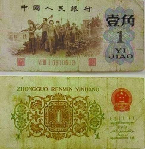 “背綠水印壹角于1962年印刷,其正面為深棕色,與普通的壹角票面無異,但背面卻有部分顏色為墨綠色,故集幣界稱之為‘背綠壹角’!奔瘞艑<冶硎,由于印刷時采用的鈔票紙不同,“背綠壹角”有帶五星水印和無水印兩種版式,其中帶五星水印的“背綠壹角”存世量十分稀少。有媒體報道,在2000年以前,背綠水印壹角從未發(fā)現(xiàn)過贗品。近年來,由于升值很快,造假者采用各種高科技手段進(jìn)行偽造,市面上逐步出現(xiàn)了贗品。