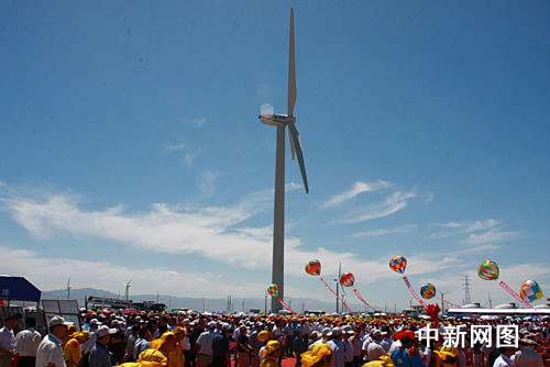 中新網酒泉8月8日電 (記者 殷春永)今天下午,國家能源局、甘肅省政府在酒泉市舉辦酒泉千萬千瓦級風電基地一期工程開工儀式,這是中國首個千萬千瓦級連片開發(fā)、并網運行的風電基地。