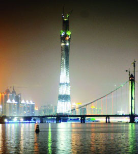 “世界第一高塔”———廣州新電視塔工程,經(jīng)過(guò)建設(shè)者26個(gè)月的連續(xù)奮戰(zhàn),昨日完成454米的主塔體封頂。