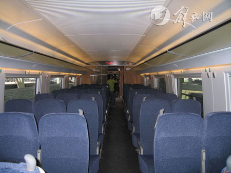 坐上列車,座椅猶如飛機經(jīng)濟艙座椅,前有可放下的桌子、椅子也可往下躺,同時還可以360度旋轉(zhuǎn)。每列京津城鐵均掛8節(jié)車廂,每節(jié)車廂都設(shè)置了寬敞的衛(wèi)生間。雖然從0到350公里/小時只需要幾分鐘,但由于車窗設(shè)計了減速玻璃,大多人還是感覺不出來車速,而且設(shè)計師在設(shè)計時還更多地考慮了安全性與舒適性,因而在行車過程中,旅客根本不需要帶安全帶,還可以自由走動。抬頭一看車廂兩側(cè)的顯示屏,卻可以驚喜地發(fā)現(xiàn)車速已達334公里/小時了。