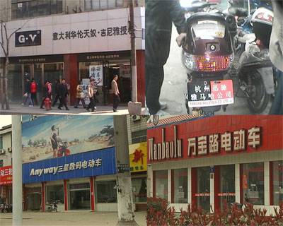 在中國(guó)電動(dòng)車生產(chǎn)最集中的江蘇無(wú)錫安鎮(zhèn),很多品牌都掛上了雅馬哈、鈴木等監(jiān)制的字樣,更有甚者,直接叫“三星數(shù)碼電動(dòng)車”,“萬(wàn)寶路電動(dòng)車”。