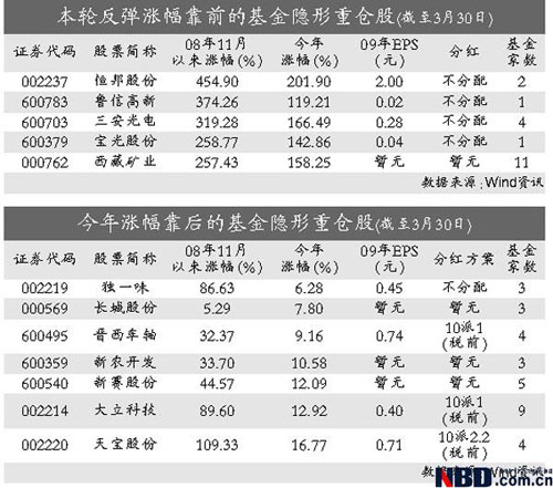 昨日,基金2008年年報的披露正式落幕,基金去年年底時的持股明細悉數浮出水面,被基金排除在十大重倉股之外的 “非主流”品種一一曝光,這些基金隱形重倉股中不乏本輪行情中的大牛股,比如恒邦股份、魯信高新等。