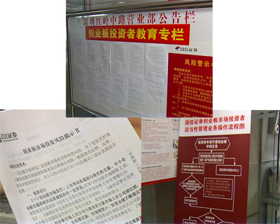 在招商證券公司的這家營業(yè)部,記者注意到公司大門外的墻面上,張貼著不少關(guān)于創(chuàng)業(yè)板的知識介紹、開戶流程等信息,而開戶大廳里人頭攢動(dòng)。
