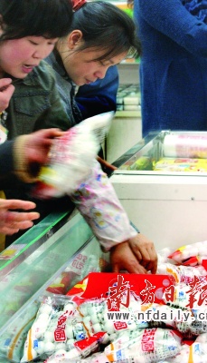 除了湯圓品種更為多樣,今年湯圓的價格也比去年有所下降,大部分品牌都在進行打折促銷。廣州家樂福超市有關(guān)負責人介紹,今年湯圓平均價格比去年略降5%左右。而銷量則穩(wěn)增近兩成。預計從本周末開始將迎來湯圓銷售的最高峰,屆時日銷量將還會翻番。