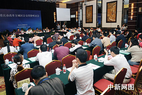 4月17日,重慶市舉行改革主城區(qū)公交票價聽證會,涉及主城800萬市民的出行問題,該市人大代表、市政協(xié)委員、消費者和學生代表在聽證會上發(fā)表了意見。下午聽證會結束時,十余名重慶市民手舉反公交漲價T恤站在聽證會門口反對漲價,引起眾多參會代表關注。
