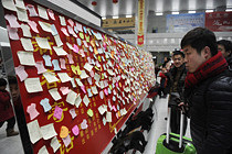 長(zhǎng)春火車站現(xiàn)“祝福墻” 為旅途增添溫馨