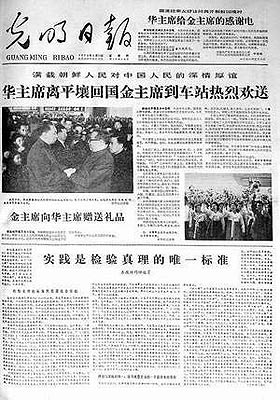 “兩個凡是”是兩報一刊的社論主題,很明顯就是當時中央的方針,要直接批它,危險性顯而易見。已是“不惑”之年的胡福明“繞了個彎子”,為“兩個凡是”找了一個“替身”,選擇當時流行的“句句是真理”、“一句頂一萬句”等謬論作為靶子。