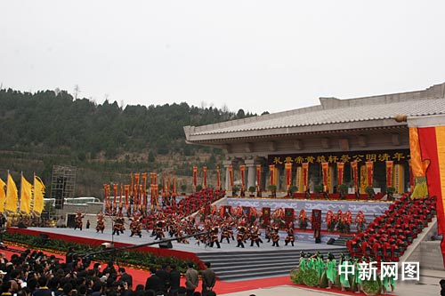 全國(guó)人大常委會(huì)副委員長(zhǎng)華建敏、全國(guó)政協(xié)副主席張榕明、澳門特首何厚鏵等高級(jí)官員出席了今天的公祭軒轅黃帝典禮。陜西省省長(zhǎng)袁純清恭讀了祭文。來(lái)自中央二十幾個(gè)部委,中國(guó)三十一個(gè)省直轄市、自治區(qū),港澳臺(tái)及海外代表共計(jì)八千余人參加了祭祀儀式。《黃帝祭祀大典圖志》也在儀式上舉行了首發(fā)式。