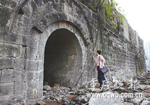 昨日下午,三峽博物館專家對這段疑似古城墻進行了勘查。副研究員、重慶古代文物專家馮慶豪認為,從肉眼觀察,城墻外表風(fēng)化程度不夠,條石的堆砌方式也不符合古城墻的修建規(guī)則。不過,專家們在一個城門洞內(nèi)發(fā)現(xiàn)疑點:洞內(nèi)石塊風(fēng)化程度竟比飽經(jīng)風(fēng)雨的外墻更厲害,且石塊用灰漿堆砌,而非近現(xiàn)代的水泥。