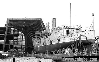 5月16日,在悲壯沉沒70周年之際,全國最大的可移動文物--中山艦,在自己的殉難地金口,正以氣囊助艦體向中山艦博物館緩慢移動。中山艦博物館位于金口江邊的金雞湖畔,其主體鋼結(jié)構(gòu)工程已經(jīng)完工。該館位于中山艦旅游區(qū)內(nèi),是武漢第一座公園式博物館。這里三山環(huán)抱,襟江帶湖,核心景區(qū)面積3.3平方公里,博物館主體建筑與牛頭山上的中山艦抗日陣亡將士紀(jì)念碑遙相呼應(yīng),場景非常壯闊。1938年10月24日,中山艦巡航武漢江夏區(qū)金口水域時,突遇日軍6架飛機轟炸,沉沒長江,艦長薩師俊和其余24名官兵陣亡。1997年,經(jīng)過78天打撈,中山艦在金口水域出水,重見天日。 中新社發(fā) 孫新明 攝
