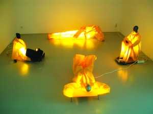 參展“融超經(jīng)驗(yàn)2008”的23位藝術(shù)家中,既有像庫(kù)奈利斯這樣享譽(yù)國(guó)際的名藝術(shù)家,也有初出茅廬的青年人。在開(kāi)幕式上,記者看到了如今旅居羅馬的庫(kù)奈利斯的三個(gè)“無(wú)題”裝置藝術(shù),還有喬治·拉帕斯的“發(fā)光雕塑”與盧卡斯·薩馬拉斯的《鏡中的房間》。喬治·拉帕斯介紹,他的靈感來(lái)自街上的燈箱:“當(dāng)光源的光向四處彌漫,四周的氛圍都發(fā)生了變化!