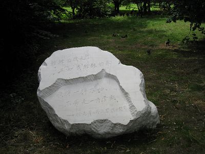 劍橋的一位中國(guó)朋友,江·西蒙將《再別康橋》的首行和末行刻在了石碑上,并將它帶到劍橋。石碑用的是北京的白色大理石(這與構(gòu)筑北京紫禁城的大理石質(zhì)地完全一樣),立在此地以作為連接中國(guó)與國(guó)王學(xué)院間紐帶的標(biāo)志。陳肖秋 編譯