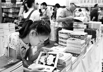 各出版社力推的作品中,娛樂明星的寫真、自傳也大幅減少。在上海文藝出版社的展臺,力推的作品包括《莫言最新長篇集結(jié)系列叢書》《王立群讀<史記>之呂后》《馬瑞芳趣話紅樓夢》《孽債Ⅱ》《上海新銳作家文庫》等文學(xué)、歷史類圖書,而昨天占據(jù)該社銷售排行榜前幾位的,也都是這些圖書。