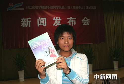 中新網(wǎng)揚(yáng)州10月17日電(記者崔佳明)10月17日下午,江蘇省揚(yáng)州市邗江實(shí)驗(yàn)學(xué)校舉行新聞發(fā)布會(huì),宣布該校初三學(xué)生趙千迪的十八萬(wàn)字長(zhǎng)篇小說(shuō)《魔界少女》第一季終于于今年二月創(chuàng)作完成,并于八月份由中國(guó)戲劇出版社正式出版發(fā)行。揚(yáng)州市作家協(xié)會(huì)主席正式宣布,吸收趙千迪入會(huì),成為該市年齡最小的作家。