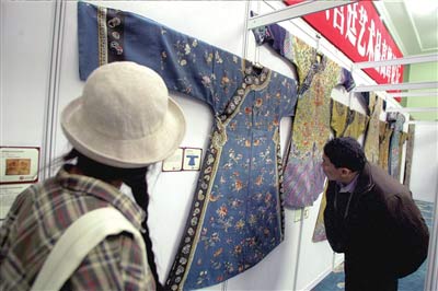在展示現(xiàn)場的清宮龍袍中,有一件清順治龍袍估價1500萬元,這樣的估價是因為它以具有“一寸緙絲,一寸金”之稱的緙絲縫制而成。據(jù)考證,這件龍袍是順治帝所穿,后流落民間,至今保存完好,具有極高的歷史價值。