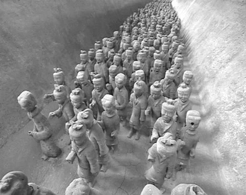 兩個多月后,上千人的陶俑群從地下凸現(xiàn),蔚為壯觀地出現(xiàn)在人們面前。
