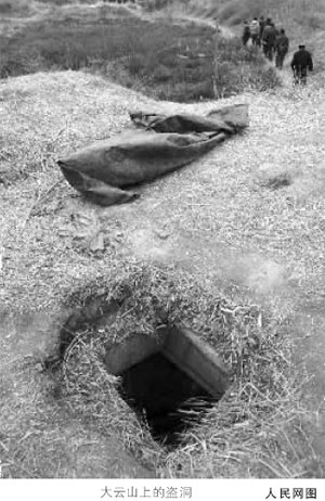 陳冬等人打算打個持久戰(zhàn)。他們先在附近租了間房子,然后購買了抽風(fēng)機(jī)、抽水泵、鐵鍬、礦燈等盜墓工具,放在屋內(nèi)。在白天,陳冬等人就在房間休息,一到晚上,他們就偷偷來到大云山上。這個海拔只有數(shù)十米的山在這片平原上顯得非常突兀,但是,陳冬知道,古墓群主要就集中在這個大云山。