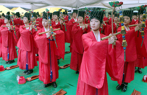 被指定為重要非物質(zhì)文化遺產(chǎn)第85號的釋奠大祭,是在孔子祭日(5月11日)和誕辰(9月28日)舉行的祭奠儀式。
