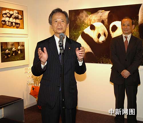中新網(wǎng)東京9月2日電 (記者 朱沿華) 為慶祝中華人民共和國建國六十周年,旅日華人攝影家馮學敏個人作品展《中國四川•熊貓的故鄉(xiāng)》二日在位于東京的尼康沙龍舉辦。中國駐日大使崔天凱、日本參院議長江田五月等中日各界人士近百人當場祝賀影展的開幕。